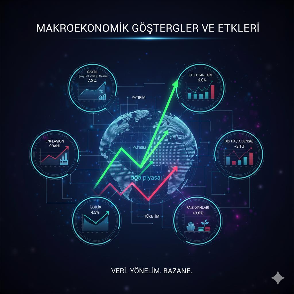 Makroekonomik Göstergeler ve Etkileri, bir ülkenin veya bölgenin genel ekonomik sağlığını yansıtan ve finansal piyasaları derinden etkileyen önemli veri setleridir. Bu göstergeler, hükümetlerin, merkez bankalarının ve yatırımcıların ekonomik kararlar almasında kilit rol oynar. En temel makroekonomik göstergelerden bazıları şunlardır: